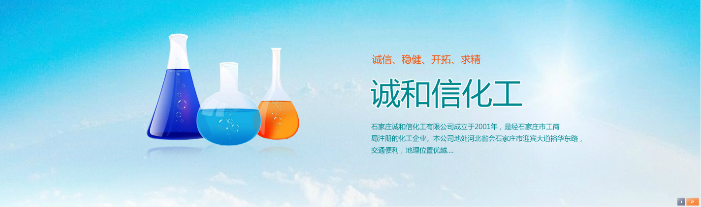 石家莊誠和信化工有限公司成立于2001年,是經(jīng)石家莊市工商 局注冊的化工企業(yè)。本公司地處河 北省會石家莊市迎賓大道裕華東路 ,交通便利,地理位置優(yōu)越。公司 主要產(chǎn)品....詳細(xì)>>